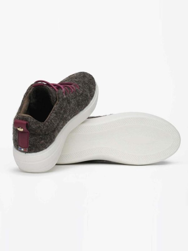 Une fabrication 100% française dans un périmètre de moins de 250 km. Le dessus de la chaussure (l’empeigne) est fabriqué en feutre de laine de moutons (Morbihan) et cousu sur une semelle injectée dans notre usine à Jarzé (49).