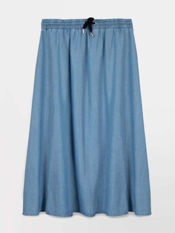Cette jupe midi (longueur dessus de cheville) est conçue en lyocell pour jouer la fluidité, la douceur et la légèreté ! Des atouts incontournables pour la saison estivale ! Sa coupe est évasée et sa ceinture est élastiquée pour un maintien parfait à votre taille. Elle se porte aussi bien avec des sandales que des baskets en fonction de vos envies !
