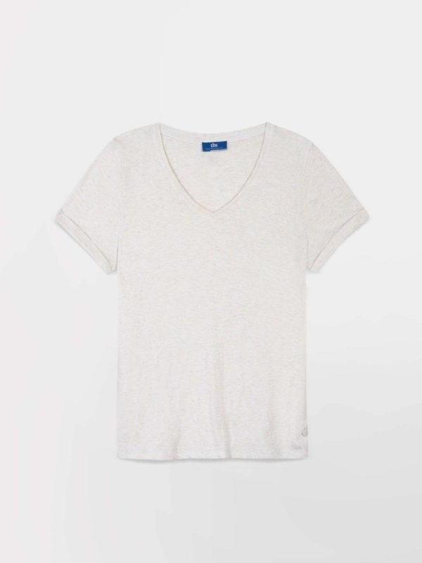 Essentiel à votre garde-robe, ce tee shirt en jersey de coton est réhaussé de fil lurex (fil brillant) pour plus de féminité. Sa coupe est confortable grâce à son col V et sa coupe légèrement cintrée. Les manches sont dotées d’un revers pour une finition parfaite. Décliné dans plusieurs coloris pour vos sihouettes cet été !