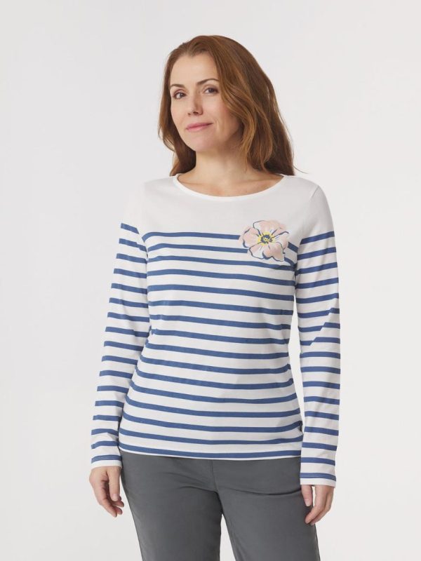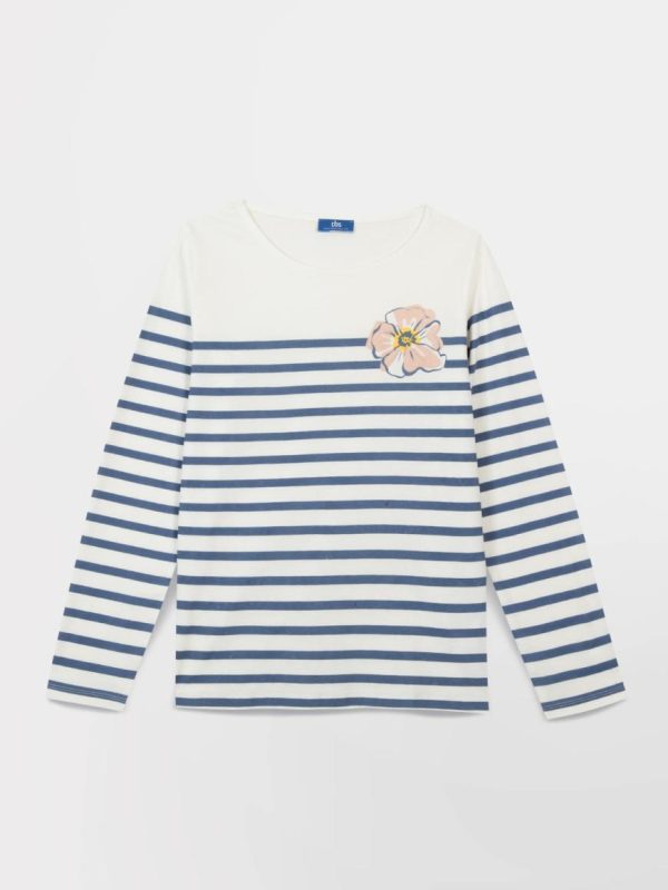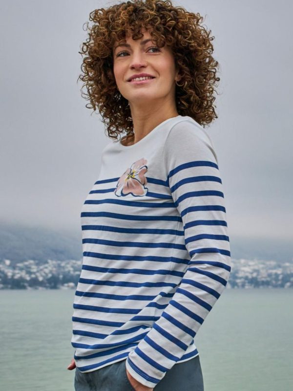 Tbs Tee-Shirts & Polos | Femme Tee Shirt Marinière Coton Biologique Blanc Marine FLOWATEE Arctique