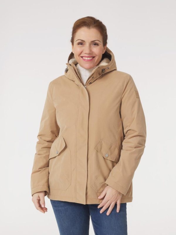Misez sur ce manteau chaud pour cet hiver! Une texture épaisse qui se traduit par un intérieur chaud en sherpa ultra doux. Sa double fermeture zippée + boutons pression assure un maintien au chaud optimal. Ses poches à rabats boutonnées gardent vos mains au chaud et ses bas de manches sont resserrés pour une meilleure tenue. Son coloris beige se veut intemporel et facile à associer avec vos looks d’hiver.
