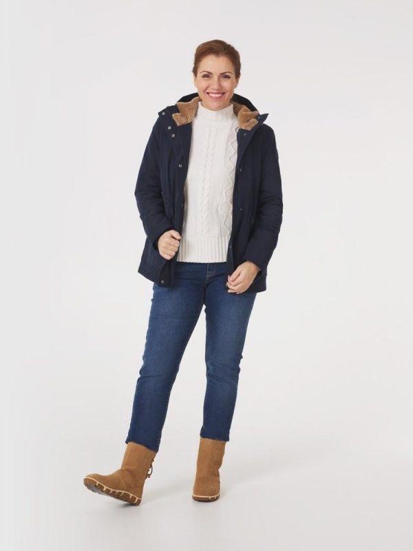 Misez sur ce manteau chaud pour cet hiver! Une texture épaisse qui se traduit par un intérieur chaud en sherpa ultra doux. Sa double fermeture zippée + boutons pression assure un maintien au chaud optimal. Ses poches à rabats boutonnées gardent vos mains au chaud et ses bas de manches sont resserrés pour une meilleure tenue. Son coloris marine se veut intemporel et facile à associer avec vos looks d’hiver.