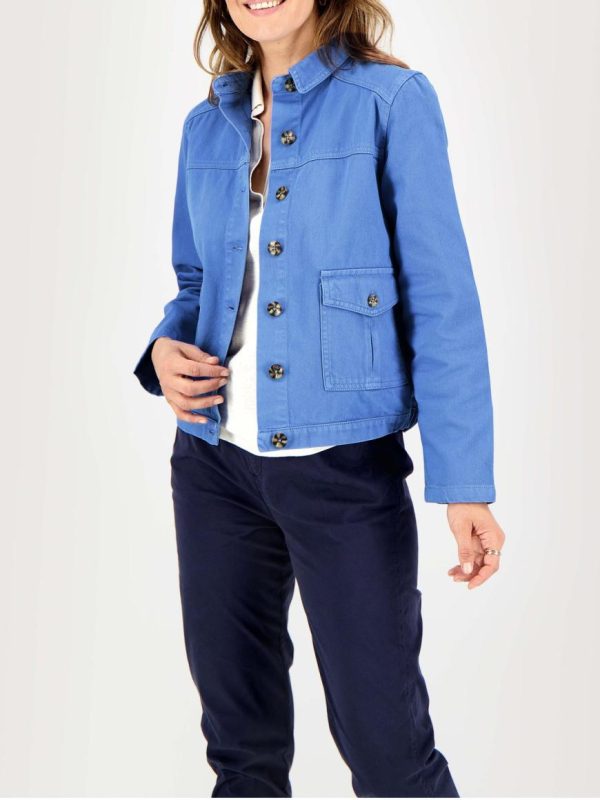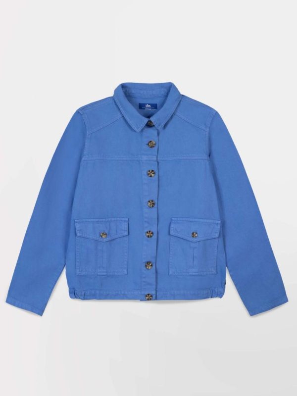 Cette veste en coton vous habille en un claquement de doigts ! Une coupe courte esprit blouson (longueur hanches) aves ses 2 poches plaquées à rabats pour plus de caractère ! Elle se veut légèrement ressérée en bas pour un maintien parfait sur vos hanches. Ses boutons esprit corne jouent la fantaisie.